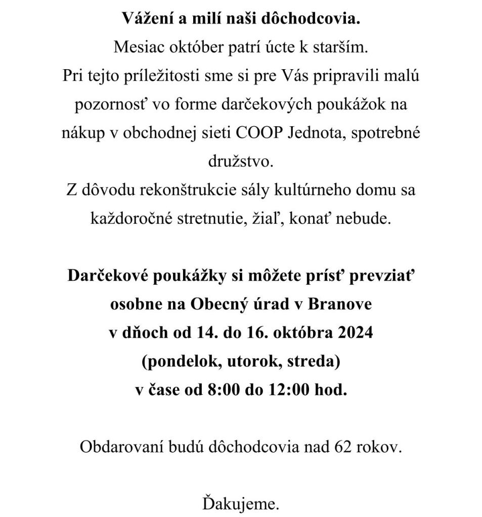 Darčekové poukážky na nákup v obchodnej sieti COOP Jednota,s.d.